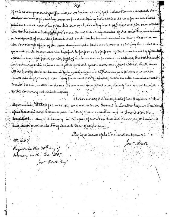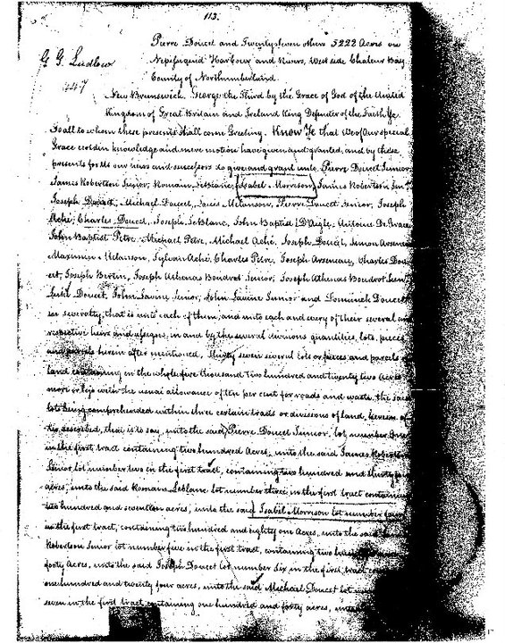 The five page Land Grant of 200 acres to Charles Doucet #2 from King George III, dated 1807.